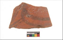 | Description / विवरण | Specimen of potsherd with black decorative geometric painting. Type Black on Red Ware . |