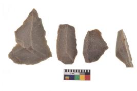 | Description / विवरण | There are n-4 of utilized flake cores. There are multidirectional irregular dominant scar pattern on both dorsal and ventral face of the cores. |