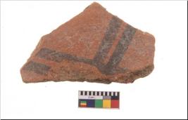 | Description / विवरण | Specimen of potsherd with black decorative geometric painting. Type Black on Red Ware . |