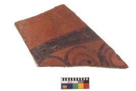 | Description / विवरण | Specimen of Potsherd black on red painted pottery. It is fine fabric in sharp contrast with painted design are executed in black pigment. |