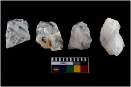 | Description / विवरण | There are n-4 of intact utilized flakes made up of Quartz. Some of them have bulge of percussion and some are flat flakes. |
