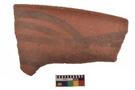 | Description / विवरण | Specimen of black on red ware with decorative geometric Its decorated with two horizontal bands with sets of trpile arches painting. |