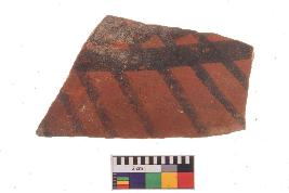 | Description / विवरण | Specimen of potsherd with black decorative geometric painting, Type Black on Red Ware . |