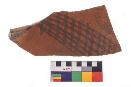 | Description / विवरण | Specimen of potsherd with black decorative geometric Net Pattern painting, Type Black on Red Ware . |