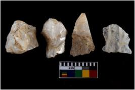 | Description / विवरण | There are n-4 of intact utilized flakes made up of Quartz. Some of them have bulge of percussion and some are flat flakes. |