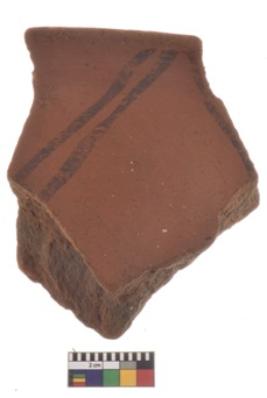 | Description / विवरण | Specimen of black on red ware with decorative geometric Outcurved two bands painting. |