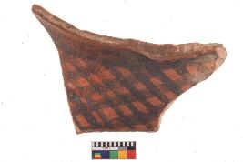 | Description / विवरण | Specimen of potsherd with black decorative geometric Net Pattern painting, Type Black on Red Ware . |