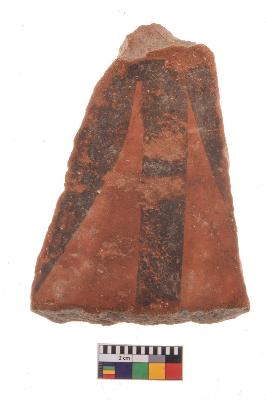 | Description / विवरण | The potsherd is decorated with two horizontal bands, one on the rim and other on the body, while between them are set of triple aches. |