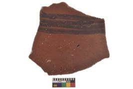 | Description / विवरण | Specimen of black on red ware with decorative geometric parallel lines painting. |