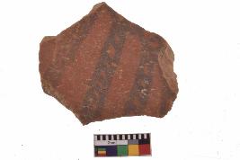 | Description / विवरण | Specimen of black on red ware with decorative geometric Vertical three lines painting. |