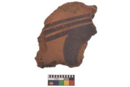 | Description / विवरण | Specimen of black on red ware with decorative geometric Outcurved three bands painting. |