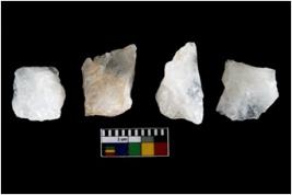 | Description / विवरण | Specimen of a cores with several broad fluted marks. Some are irregular in shape whereas some are tapering at one end. |