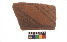 | Description / विवरण | Specimen of potsherd with black decorative geometric painting. Type Black on Red Ware . |