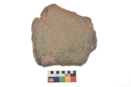 | Description / विवरण | Specimen of a turquoised glazed ware base portion of a pot. It has a single sided glossy surface. |