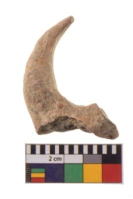 | Description / विवरण | A fragment of an handmade horn of a bull figurine made with fine clay. It is red ware, well fired and smooth in texture. |