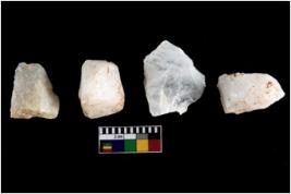 | Description / विवरण | Specimen of a cores with several broad fluted marks. Some are irregular in shape whereas some are tapering at one end. |