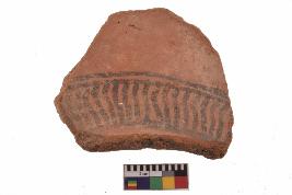 | Description / विवरण | Specimen of black on red ware with decorative geometric Set of litticed lines in two horizontal bands painting. |