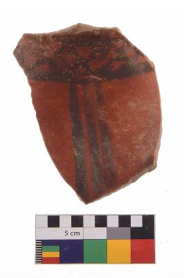 | Description / विवरण | Specimen of potsherd with black decorative geometric painting, Type Black on Red Ware . |