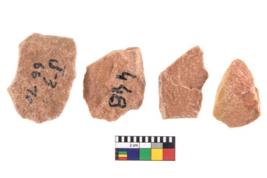 | Description / विवरण | It made up of a short flakes with sides trimmed. It rained pebbly cortex on one side and irregular thin edge on the other. |
