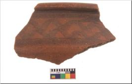 | Description / विवरण | Specimen of potsherd with black decorative geometric painting. Type Black on Red Ware . |