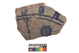 | Description / विवरण | Specimen of a glazed ware with blue coloured geometric pattern painting on it. It has a single sided glossy surface. |