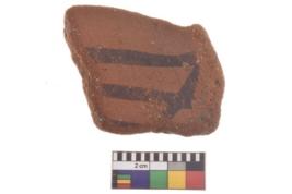 | Description / विवरण | Specimen of black on red ware with decorative geometric Two horizontal lines painting. |
