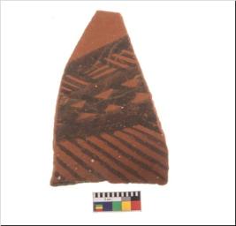 | Description / विवरण | Specimen of potsherd with black decorative geometric painting. Type Black on Red Ware . |