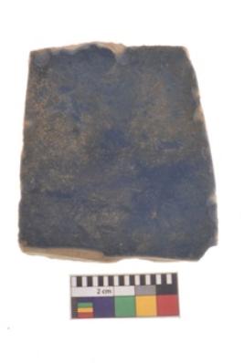| Description / विवरण | Specimen of a turquoised glazed ware. Both the sides have a glossy surface. |