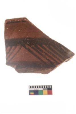 | Description / विवरण | Specimen of potsherd with black decorative geometric painting . |