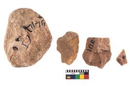 | Description / विवरण | It made up of a short flakes with sides trimmed. It rained pebbly cortex on one side and irregular thin edge on the other. |