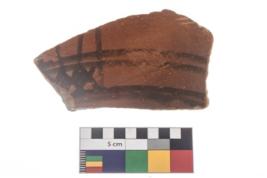 | Description / विवरण | Specimen of potsherd with black decorative geometric painting . |