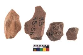 | Description / विवरण | It made up of a short flakes with sides trimmed. It rained pebbly cortex on one side and irregular thin edge on the other. |