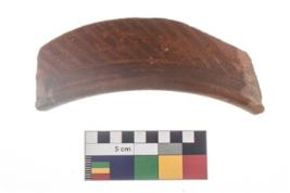 | Description / विवरण | Specimen of potsherd with black decorative geometric painting . |