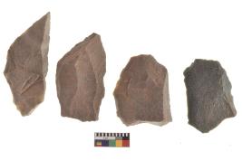 | Description / विवरण | There are n-4 of utilized flake cores. There are multidirectional irregular dominant scar pattern on both dorsal and ventral face of the cores. |