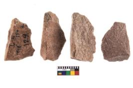 | Description / विवरण | It made up of a short flakes with sides trimmed. It rained pebbly cortex on one side and irregular thin edge on the other. |