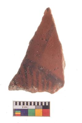 | Description / विवरण | Specimen of potsherd with black decorative geometric Linear painting, Type Black on Red Ware . |