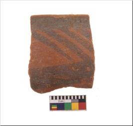 | Description / विवरण | Specimen of potsherd with black decorative geometric painting. Type Black on Red Ware . |