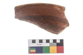 | Description / विवरण | Specimen of potsherd with black decorative geometric painting . |