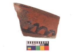 | Description / विवरण | Specimen of potsherd with black decorative geometric painting, Type Black on Red Ware . |