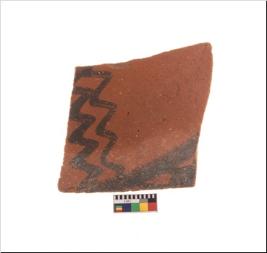 | Description / विवरण | Specimen of potsherd with black decorative geometric painting. Type Black on Red Ware . |