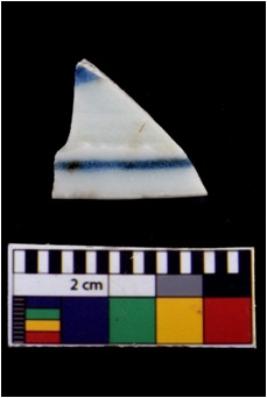 | Description / विवरण | Specimen has a glossy white surface with blue painting over it. |