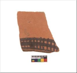 | Description / विवरण | Specimen of potsherd with black decorative geometric painting. Type Black on Red Ware . |