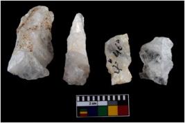 | Description / विवरण | There are n-4 of intact utilized flakes made up of Quartz. Some of them have bulge of percussion and some are flat flakes. |