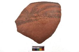 | Description / विवरण | Specimen of black on red ware with decorative geometric Its decorated with two horizontal bands with sets of trpile arches painting. |