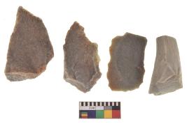 | Description / विवरण | There are n-4 of utilized flake cores. There are multidirectional irregular dominant scar pattern on both dorsal and ventral face of the cores. |