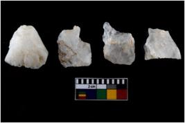 | Description / विवरण | There are n-4 of intact utilized flakes made up of Quartz. Some of them have bulge of percussion and some are flat flakes. |
