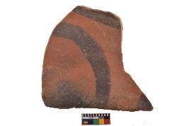 | Description / विवरण | Specimen of black on red ware with decorative geometric Curve lines painting. |