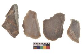 | Description / विवरण | There are n-4 of utilized flake cores. There are multidirectional irregular dominant scar pattern on both dorsal and ventral face of the cores. |