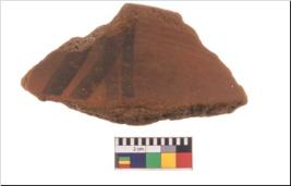 | Description / विवरण | Specimen of potsherd with black decorative geometric painting. Type Black on Red Ware . |