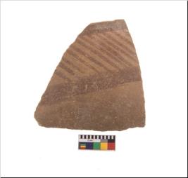 | Description / विवरण | Specimen of potsherd with black decorative geometric painting. Type Black on Red Ware . |